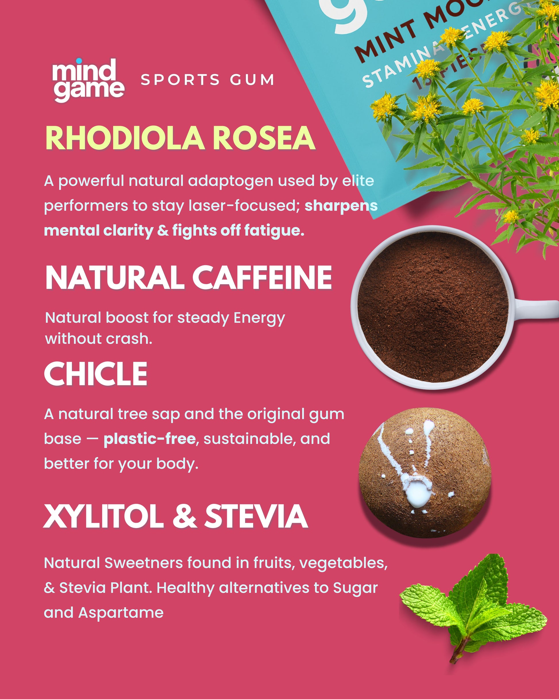 Our gum delivers precision energy for athletes and high-performers who can’t afford to crash.